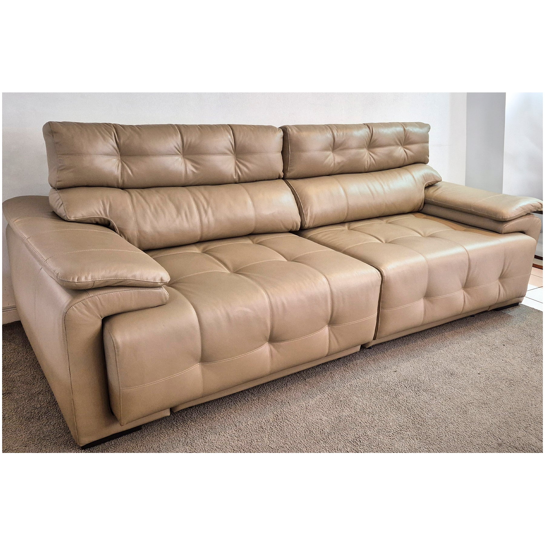 O Sofá Tokio combina força, versatilidade e um conforto surpreendente. Produzido em couro legítimo e com acabamento em pesponto em cruz, ele traz um visual moderno sem perder o charme clássico.